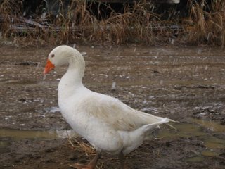 During Spring and Summer, he pretty much lives on the grasses and the like that grow naturally on the land. Otherwise, we give him chicken scratch. Also, he will let us know when the neighbors are coming by squawking away; he’s something of a pretty good watch-goose.