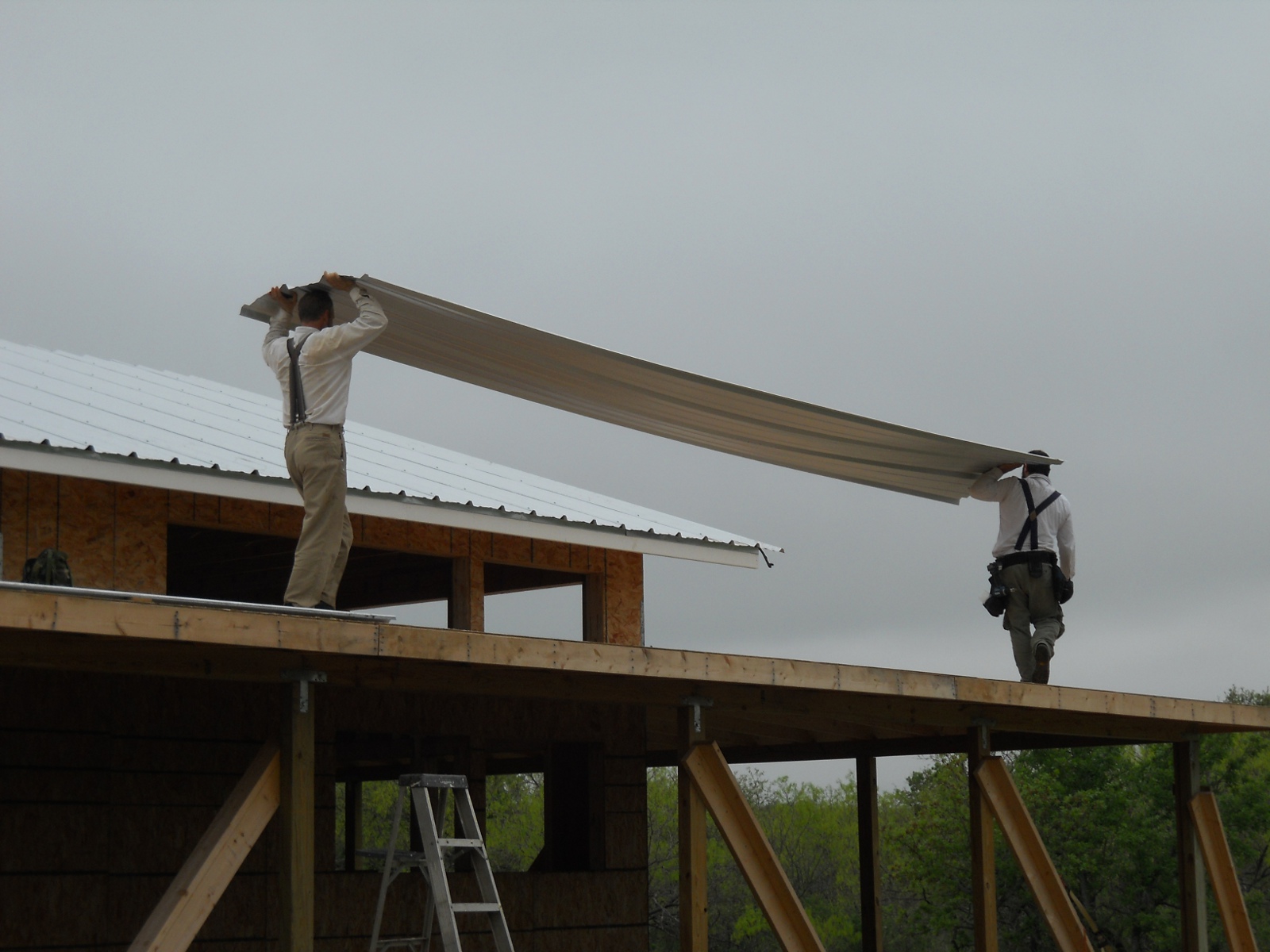 With the house internal walls framed, it was time to finish on the roof. I decided to go with metal roofing, for its longevity.
