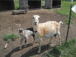 First, over the Winter we lost one of our favorite does, Hannah. She succumbed to something pretty quickly over a day and a half or so. She was one of a kind — sometimes we called her Houdini, because she would be hooked up to the fence line or in a shed, and Sue would turn around to do something, and then Hannah would walk up behind her. And so, Sue would hook her up again, and turn around, and not long after, again, Hannah would walk up! 🙂 She was also our most LaMancha breed of the females we had, and I had wanted to keep one of her female offspring, but the Lord in His perfect wisdom and goodness had other plans. But, we are thankful for the time He granted her to be with us, and the offspring and milk from her over the years. We miss her! This is she with her kid from last year. Bye Hannah-bo-banna…