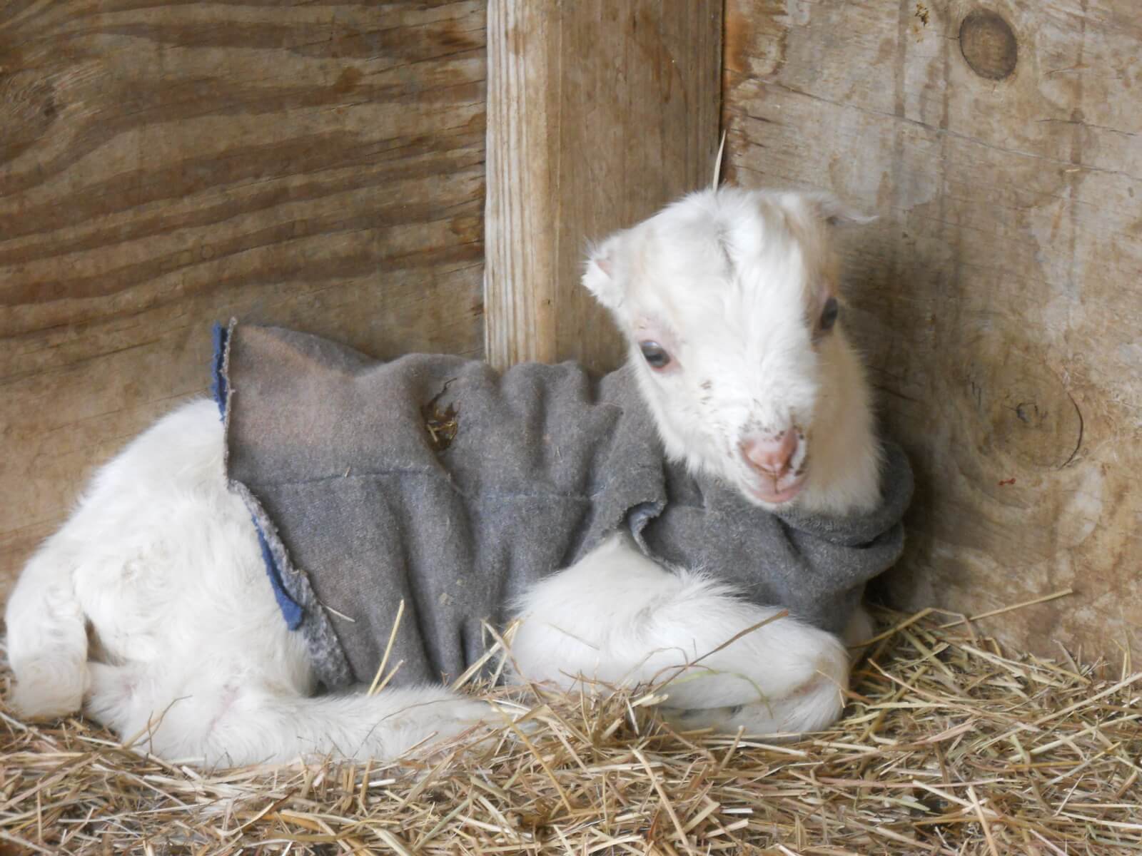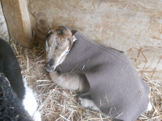 But, continuing on, we try to time it in November so the kids are born when it’s past the cold, but we had later cold this year, so it was goat coat time! 😀