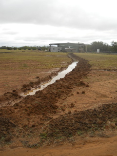 Given that, and after he was done, since he had already done it for some other people, Mr. Stonger offered that if we wanted, he would dig out some trenches as swales, with the purpose of keeping more water on the field. And with him willing, we went ahead with that.